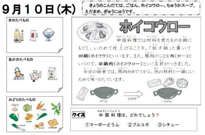 9月9日(水)の給食