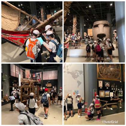 日本庭園は、短い時間でしたが秋の植物を見て楽しんでいました。国立民族博物館は、グループで展示を見て回りました。思ったことを伝えあったり、興味のある展示をじっくり見たりして過ごしました。世界の文化の展示がたくさんありました。様々なくらしや文化を感じることができましたか。