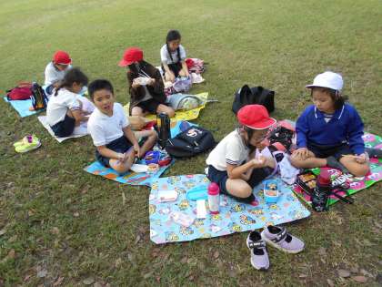 2年生は、昨日大仙公園へ遠足に行きました。オリエンテーリングでは、秋の自然を見つけたり、先生のクイズに答えるなど友達と協力して活動することができました。広い公園で、元気いっぱい活動活動しました。