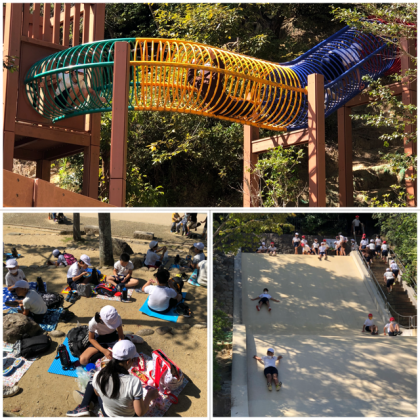 昼食の後、やんちゃの里で思いっきり遊びました。大きなすべり台などたくさんの遊具で遊ぶ姿が見られました。