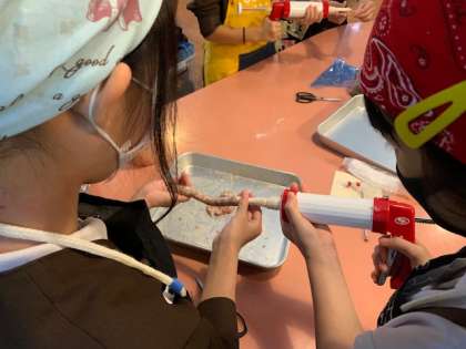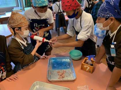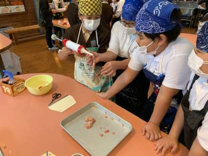 さあ、ソーセージ形作りの実践です。みんな頑張れー!美味しそうな形になっているグループもありますね。
