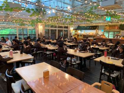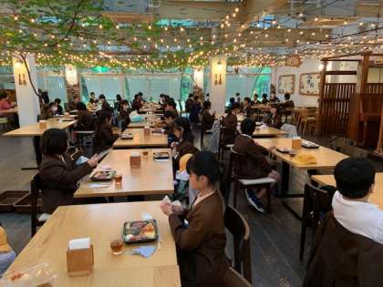 遅くなりましたが昼食タイムです。大きなソーセージが入っています。美味しくいただきます。