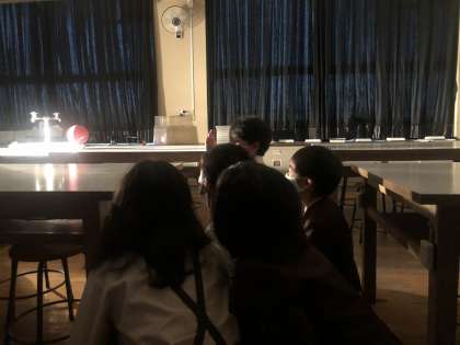 6年生では、理科で「月の形の変化と太陽」について学習しています。今日は理科室で月に見立てたボールに太陽に見立てたライトを当てて、どのように月の形が変化するのかを確認しました。「三日月になった!」「どんどん満月に近づいていく!」と月の形がだんだんと変化する様子を見て驚いていました。