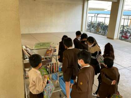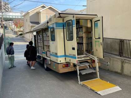 2学期最後の自動車文庫がありました。今日もたくさんの子どもたちが本を借りる様子が見られました。