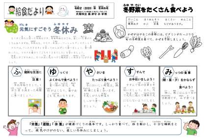 もうすぐ待ちに待った冬休みです。年末年始をはさみ、楽しい行事がたくさんありますね。冬休みも、マスク・手洗い・ソーシャルディスタント!