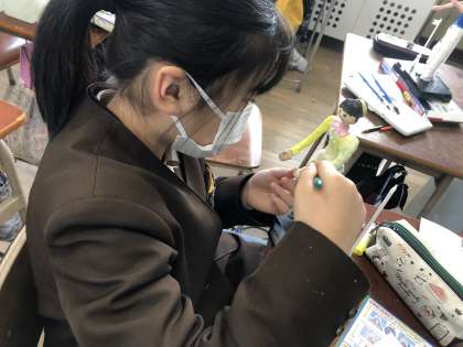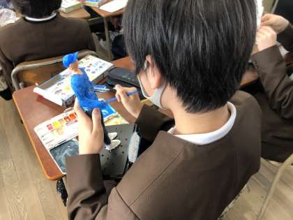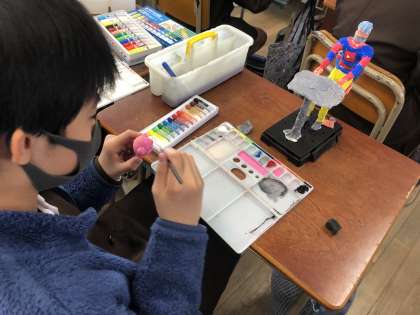6年生では、図画工作科で「12年後のわたし」を紙粘土で表現しています。消防士やサラリーマン、美容師など自分の将来の姿をイメージして一生懸命に取り組んでいます。彩色をしていくと、自分のイメージ通りの作品に近づいていき、どの児童も楽しく作っている姿が見られました。明日は、小物を作ったり背景を描いたりします。お家でもどんな作品を作っているのか、子どもと話してみてください♪
