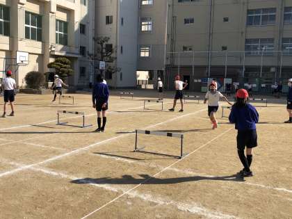 6年生は2月からハードル走に取り組んでいます。まず、40m走の記録を計測して、ハードル走の目標記録タイムを決めました。今日は、1回目の測定!初めてなので、目標タイムまでは届かない児童がほとんどでした。グループでアドバイスをしあい、練習を重ねて、少しでも近づけるように頑張ってほしいと思います。