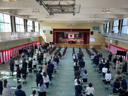 初めての小学校で、少し緊張した様子の子どもたちでしたが、式が終わるころには、マスク越しでも伝わる素敵な笑顔を見せてくれました。
