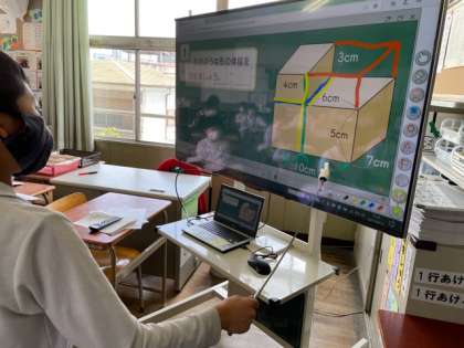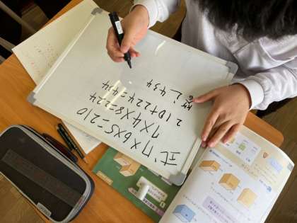 今日は、複合した立体の体積の求め方を考える学習をしました。図形を2つに分けて考えたり、大きな直方体から欠けた部分をひいたりとよく考えて学習に取り組んでいました。