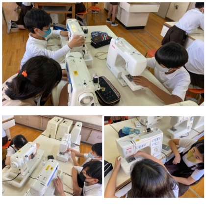 5年生では家庭科でミシンの学習に入りました。今日は、ミシンの各名称や糸のかけ方を学習しました。