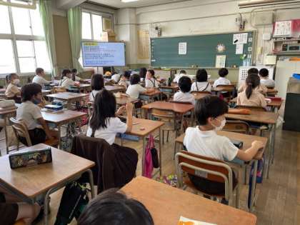 みんなそれぞれの学級で静かにお話を聞くことができました。校長先生からは、「6月に入り、暑い日も増えてきましたが、水分補給をこまめに行い、元気に過ごしましょう。また、職員室前にみんなの自主学習や、普段の授業ノートのコピーを貼っています。上手にまとめられているものばかりなので、ぜひ学習の参考にしてみましょう。」というお話がありました。今週もがんばりましょう♪