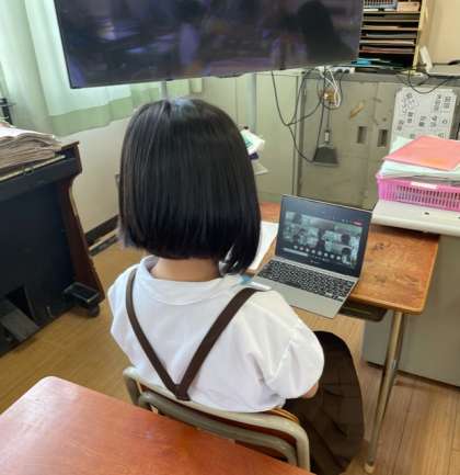 今日は各学年の教室に分かれて、Teamsを使って自己紹介をしました。
