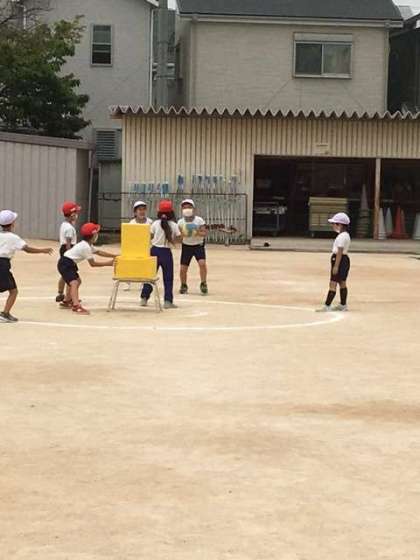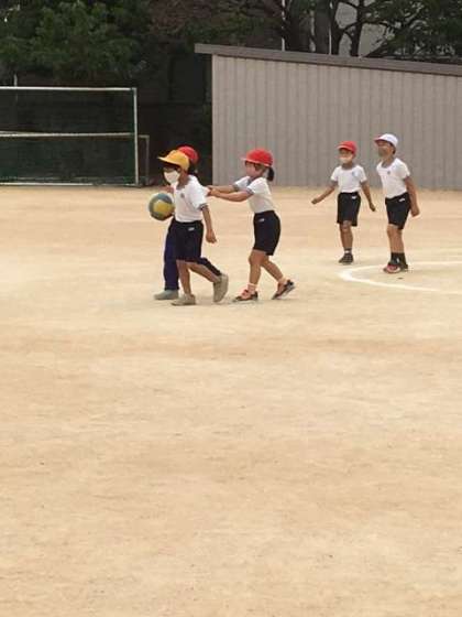 体育の授業で、シュートゲームのリーグ戦に入っています。子どもたちはチームごとに作戦をたてて、学びあいを入れながら体を動かしています。体だけでなく頭も使って活動しています。