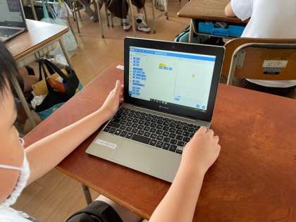 動きや方向を予想してプログラムを組み立てるのが初めは難しかったですが、だんだんコツがわかってきて、「こうしたら簡単にできるよ。」と、友達同士で教えあう姿が見られました。