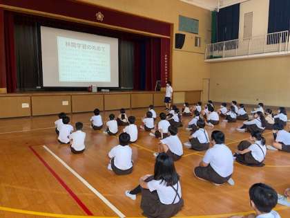 今日は林間学習の説明会を行いました。宿舎の写真や行程内容を見て子どもたちはとってもわくわくしている様子でしたよ^^