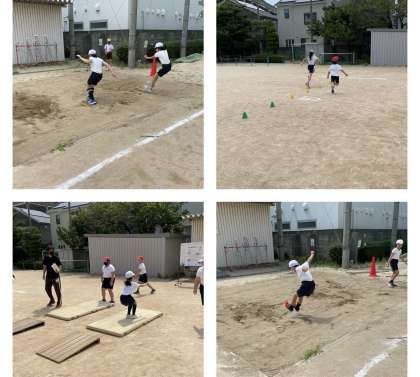 現在、体育科では、走り幅跳びをしています。今日は、助走や着地の仕方を練習しました。片足で踏切り、ひらがなの「ん」の形で着地することや、助走するタイミングやスタートする距離を確かめました。ポイントを掴み、前回の試しの記録会よりも記録が伸びている人が多くいました!