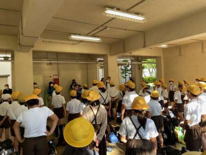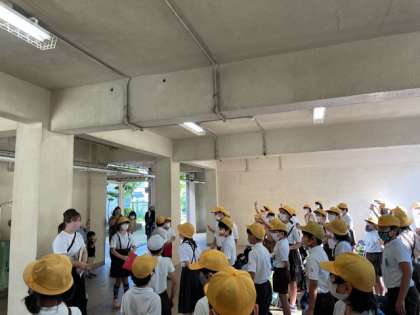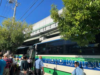 出発式をしました。「行ってきます!」と、元気よくお見送りの皆さんにあいさつしました。バスに乗り込んで出発です。気を付けて、いってらっしゃい♪