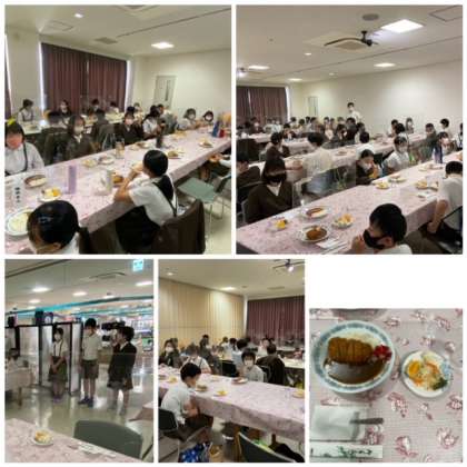 修学旅行最後の食事はカツカレーライスです。美味しくいただきます。