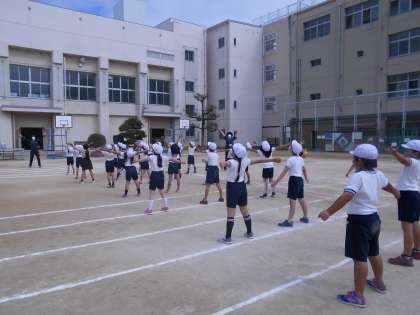 開会式の並び方や座席の確認の後、体を大きく動かしてラジオ体操をしました。
