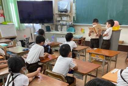 日直さんがスピーチをしている様子です!みんなしっかりスピーチを聞いているので、たくさんの人が質問していました。明日の日直さんのスピーチも楽しみですね♪