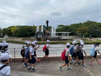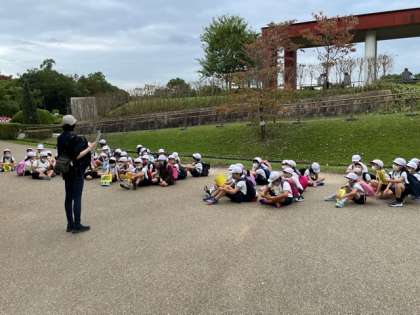 今日、3年生は遠足で服部緑地公園に来ています。とても過ごしやすい気候です。