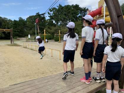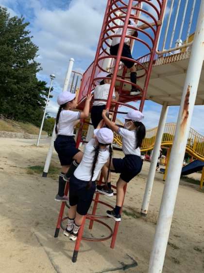 たくさんの遊具で元気よく遊んでいます!今からみんなでお弁当、おやつの時間です。