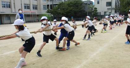 運動会に向けて、綱引きの練習をしました。