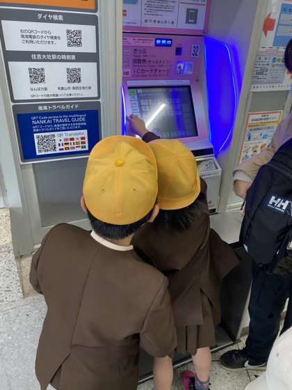住吉大社では、神社の雰囲気を感じながら散策し、住吉大社駅では帰りの切符を自分で券売機から買いました。誰一人間違えることなく買うことができました。