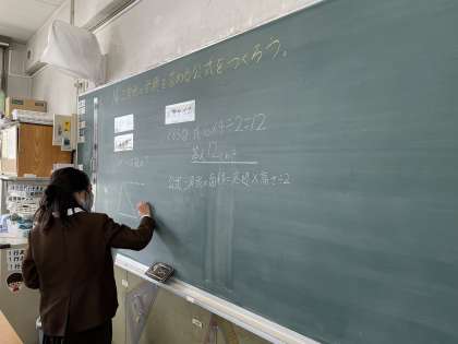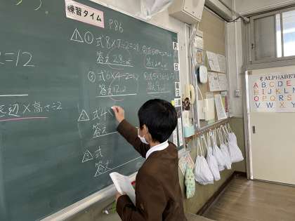 今日は、三角形の面積の求め方を考えました。予習してきたことをもとに、話し合ったり、発表したりすることができました!