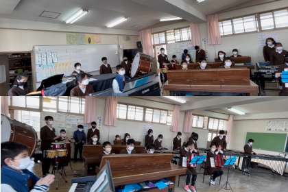 今日は、6年生で合奏発表会を行いました。1組は「情熱大陸(葉加瀬太郎)」、2組は「ピースサイン(米津玄師)」、3組は「イエスタディ(Official 髭男 dism)」を合奏しました。各クラス、それぞれに表現の工夫があり、友達の演奏をじっくり鑑賞していました。