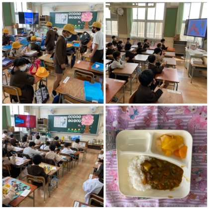 4時間目は待ちに待った給食の準備です。3時間目くらいから待ちきれなかった子も多く、みんなとっても楽しみにしていました。