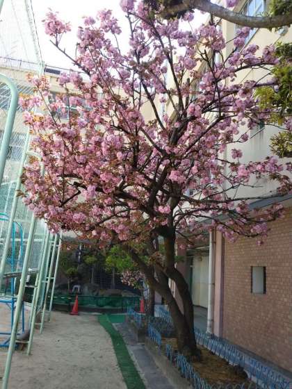 校内の桜は葉桜となりましたが、八重桜はきれいにさいています。