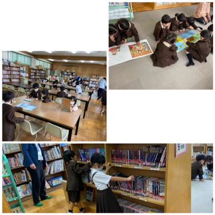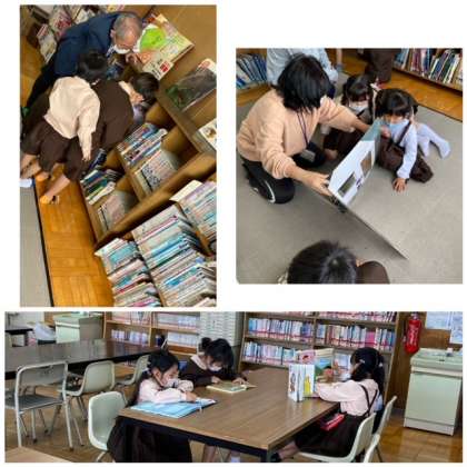 今日は、自分の名前と好きなものを紹介したり、図書室に行ってみんなで本を読んだりしました。