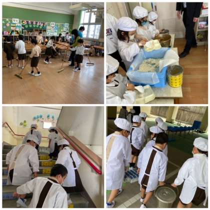 今日から給食当番も、そうじ当番も、自分たちでやります!