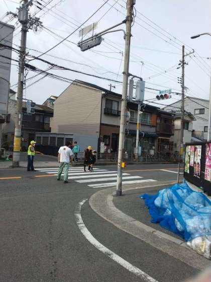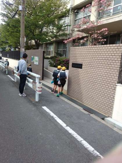 登校風景です。通学路や正門で子どもたちを迎えます。