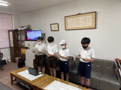 この日に向けて、休み時間や放課後に報告会の練習をしたり、校長室でリハーサルをしたりしました。練習から少し緊張しているようでした。