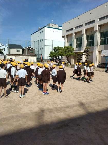 児童集会が終わり教室にもどります。集会では後姿についての話がありました。