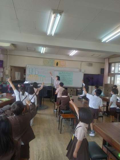 音楽の授業です。元気な声が響きわたっています。