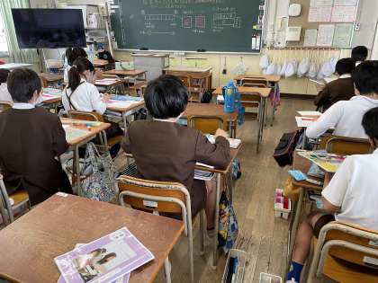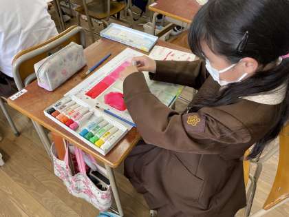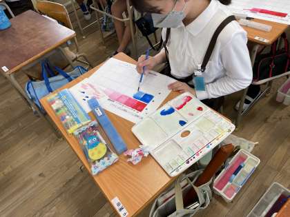 図工では、絵の具でグラデーションにチャレンジしています。水の量を調節し、濃い色から薄い色になるように頑張りました。はじめは、なかなか上手くいかない様子でしたが、慣れてくると上手にグラデーションを完成させることができました!