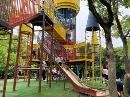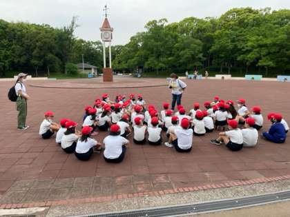 行きはしっかりマナーを守ることができました。今、大泉緑地に着いて、元気よく遊具で遊んでいます。