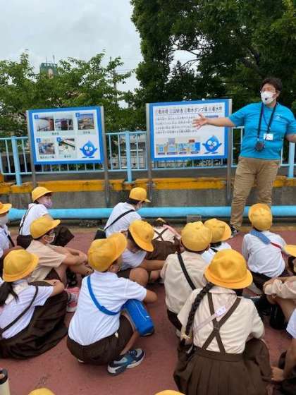 ビデオでの説明や、浄水場内の施設見学、水のろ過実験をしました。水をきれいにするだけではなく、臭いをとる方法についても知り、より深い学びになりました。また、お家でもお話を聞いてあげてみてください。