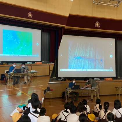 今日の3・4時間目に大阪市環境局の方々に来ていただいて「生き物探し」をしました。学習園・池の周辺・校舎裏・正門付近チームに分かれて生き物を探しました。いつもは、気がつかないような小さな植物や、聞いたことのない生物についても詳しく教えてもらいました。「池の近くにはトンボの赤ちゃんがいたよ!」とお昼休みにも虫かごを持ってもう一度観察に行っていました。次は、季節が変わったときの生き物と比べていけるといいですね!