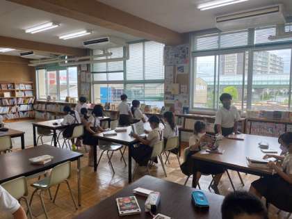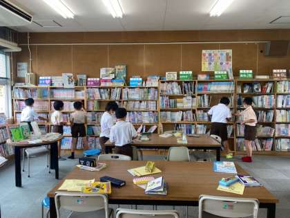 火曜日には、1・2組とも図書の時間があります。図書の時間には、それぞれ興味がある本を集中して読んでいます。少し前は社会で、水について学習していたので、浄水場の本などが人気でした。今は、理科で星について学習しているので、星の本も人気があります。プログラミングの本を借りて休み時間にゲームを作っている子もいました。