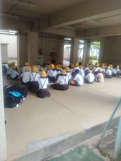 5年生はピロティに集合です。