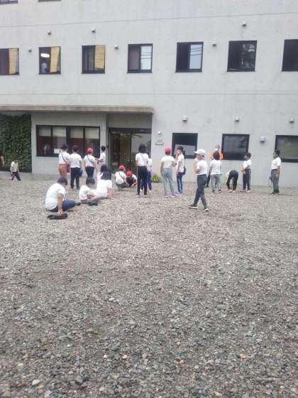 まもなく、朝の集いが始まります。まだ、少し眠たそう。