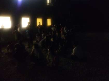 まっ暗な中、よるの散歩にでかけます。