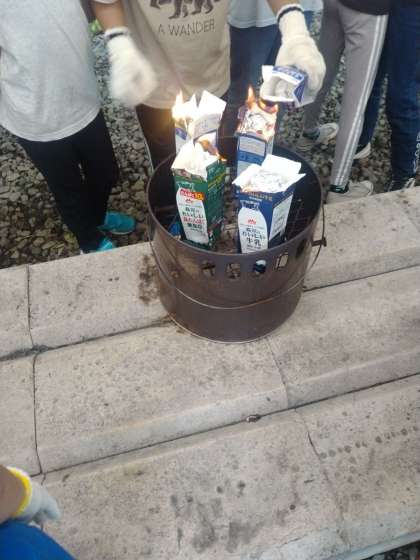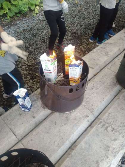 カートンドックに火をつけて、焼き上がりを待ちます。