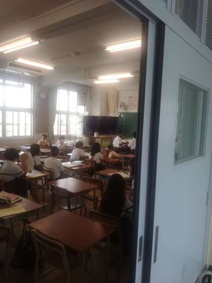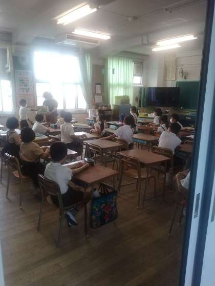 宿題の確認や夏休みの話しをしています。力作もありますね。
