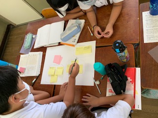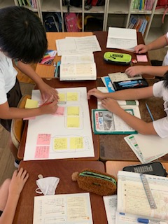 国語の時間では話し合いを計画的に進め、グループで考えを広げたりまとめたりする学習をしています。