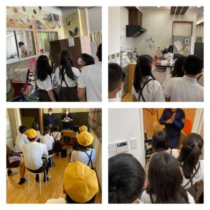 今日は、ナンクルナイサーケアネットで働く方々に協力していただき、施設見学をさせていただきました。お風呂や食事スペース、事務所など施設内の見学や、いろんな介護体験をさせていただきました!中でも、送迎車に乗せていただいたときの子どもたちの表情はとてもキラキラしていて、そこで働く方々のやりがいや想いをたくさん感じ取った様子でした。子どもたちの質問にもたくさん答えていただきました。将来に向けて、「働く」ということをイメージできたかと思います。